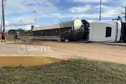 Durante la jornada de este domingo, se registró el vuelco de costado de un camión cisterna en la carretera que une los municipios de Warnes y Santa Cruz de la Sierra. El incidente dejó al conductor herido y provocó una alerta de seguridad, ya que se presume que el vehículo transportaba alcohol, una sustancia de alta inflamabilidad, según informó el inspector policial Franklin Villazón.